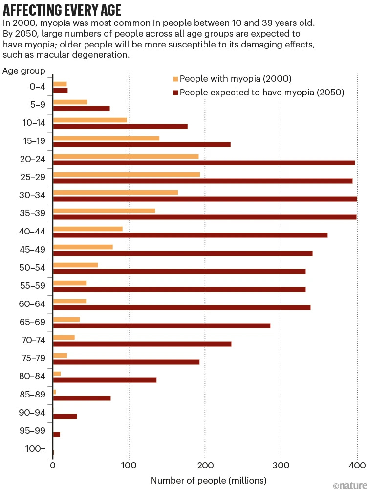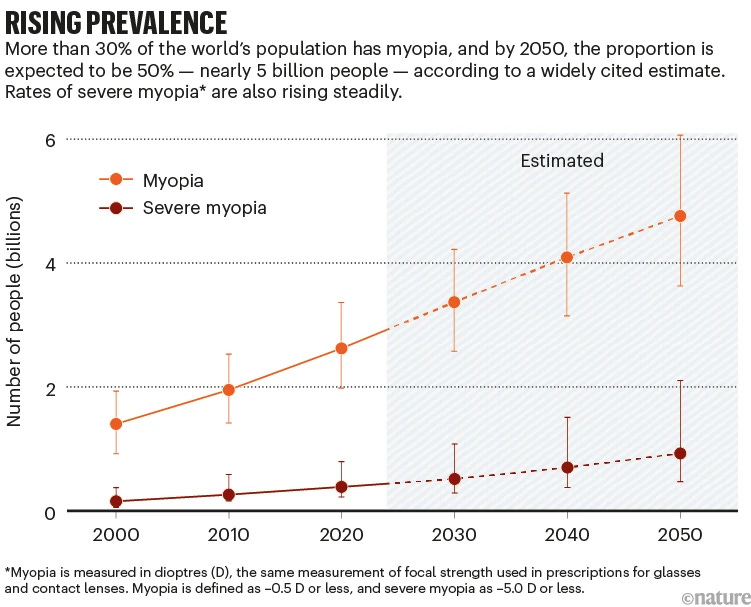 يعاني حوالي ٣٠٪ من سكان العالم من حسر البصر (ضعف الرؤية للبعيد)، ويتوقّع ضمن المعطيات الحالية، وبحلول عام ٢٠٥٠، أن تصل هذه النسبة إلى ٥٠٪ أي حوالي ٥ مليار شخص!